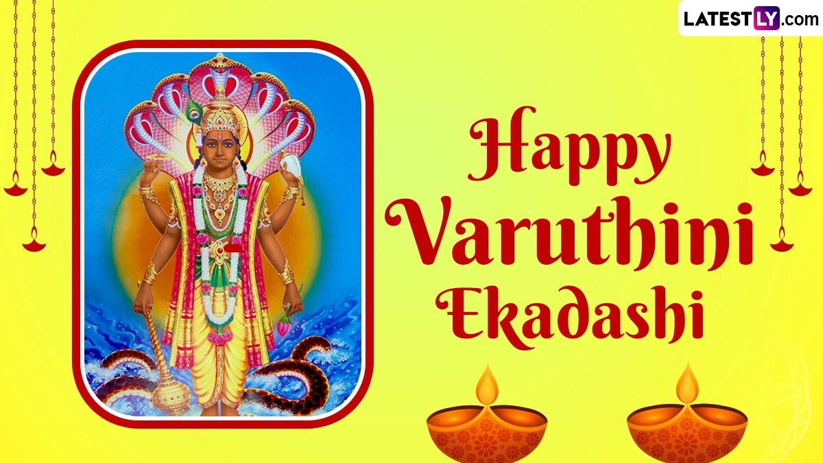 Varuthini Ekadashi, also known as Baruthani Ekadashi or Baruthani Varuthini Ekadashi, holds significant religious importance in Hinduism. This sacred day falls on the eleventh day (Ekadashi) of the Krishna Paksha (waning phase of the moon) in the Hindu lunar month of Vaishakha, typically April or May in the Gregorian calendar. Varuthini Ekadashi Vrat 2024 will be observed on Saturday, May 4. Devotees observe this vrat (fast) with great devotion and dedication to seek blessings, cleanse their souls, and attain spiritual merits. As you observe Varuthini Ekadashi Vrat 2024, we at LatestLY have brought together a collection of messages that you can download and share with all your near and dear ones to wish them on this day with WhatsApp stickers, GIF Images, HD wallpapers and SMS. Wish Happy Varuthini Ekadashi With Lord Vishnu Photos, WhatsApp Messages and Greetings.