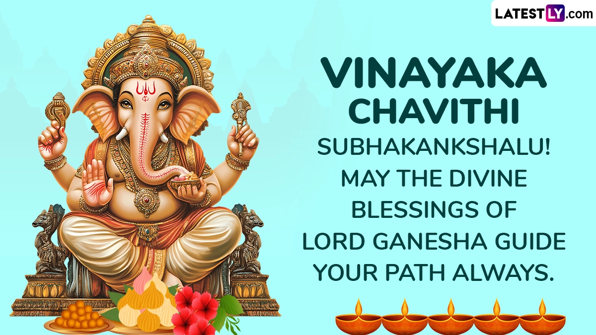 Vinayaka Chaturthi is the annual celebration that marks the birthday of Lord Ganesha and is marked with great fervour and enthusiasm by people across South India. On the occasion of Vinayaka Chaturthi, people often prepare a special idol of Lord Ganpati using turmeric and conduct a special pooja of the idol. Vinayaka Chaturthi 2025 will be marked on August 27. This annual festival is believed to help seek the blessings of Lord Ganapti and fill our lives with prosperity and happiness. People often celebrate Vinayaka Chaturthi by posting Happy Vinayaka Chaturthi 2025 wishes and messages, Vinayaka Chaturthi 2025 greetings, Happy Vinayaka Chaturthi WhatsApp stickers, Vinayaka Chaturthi 2025 images and wallpapers, Happy Vinayaka Chaturthi 2025 Facebook status pictures with family and friends. Vinayaka Chavithi Subhakankshalu 2025 Images and Happy Ganesh Chaturthi HD Wallpapers for Free Download Online: Share WhatsApp Messages, Greetings and Quotes for Loved Ones.