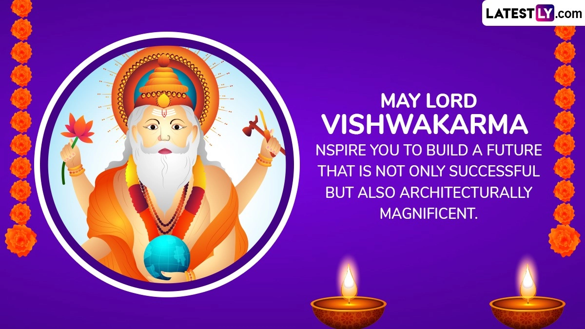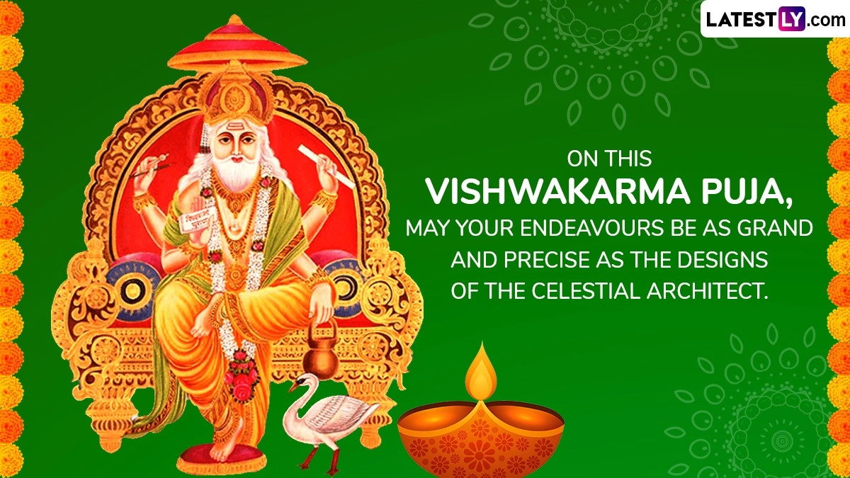 Vishwakarma Jayanti is a Hindu festival dedicated to Lord Vishwakarma, the divine architect and craftsman of the universe. Celebrated primarily by artisans, craftsmen, engineers, and industrial workers, it marks a day of gratitude and prayers for prosperity in their professions. Factories, workshops, and tools are worshipped, and devotees seek Lord Vishwakarma's blessings for success and innovation in their work. Also known as Vishwakarma Puja, Vishwakarma Jayanti 2024 falls on September 16. We at LatestLY, bring you Vishwakarma Jayanti 2024 wishes and greetings to share with your family and friends.