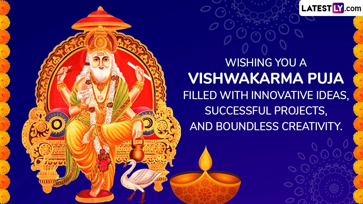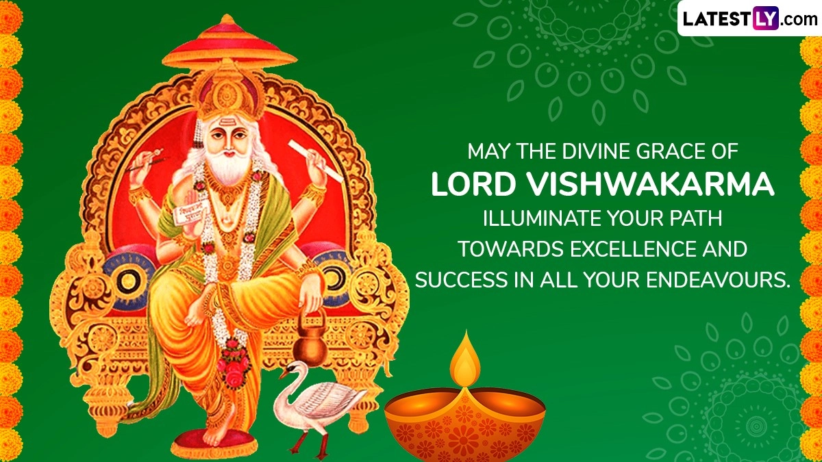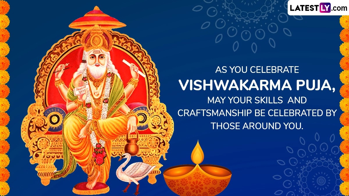 Lord Vishwakarma is revered as the creator of the celestial palaces and the architect of various divine structures mentioned in Hindu mythology. His role encompasses the design and construction of iconic structures such as the city of Lanka for Ravana and the golden city of Dwarka for Lord Krishna. On Vishwakarma Puja, devotees pay homage to this revered figure by seeking his blessings for success and proficiency in their professional endeavours, especially those related to craftsmanship, engineering, and architecture. As you observe Vishwakarma Puja 2024, share these Vishwakarma Puja 2024 wishes, WhatsApp messages, Vishwakarma Jayanti greetings, wallpapers, HD images, quotes and photos.