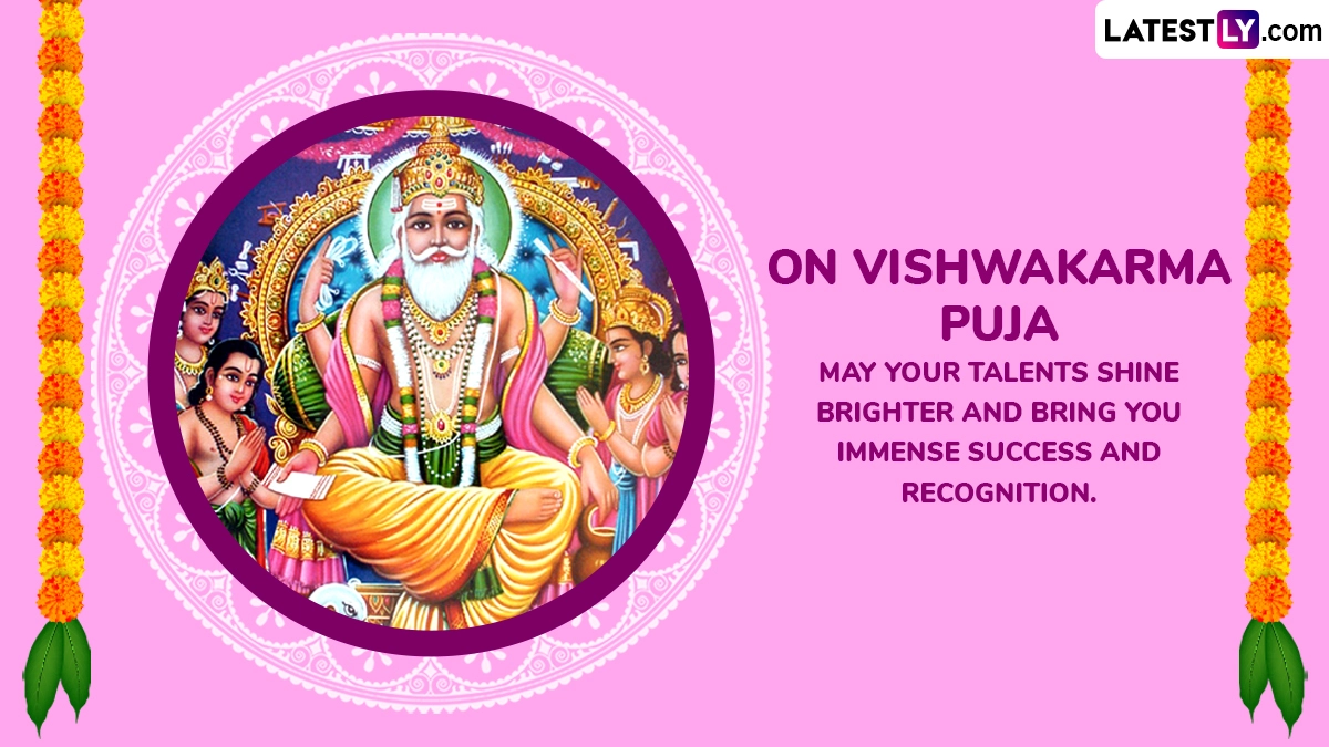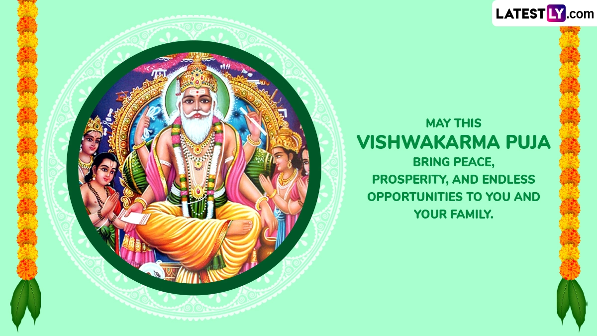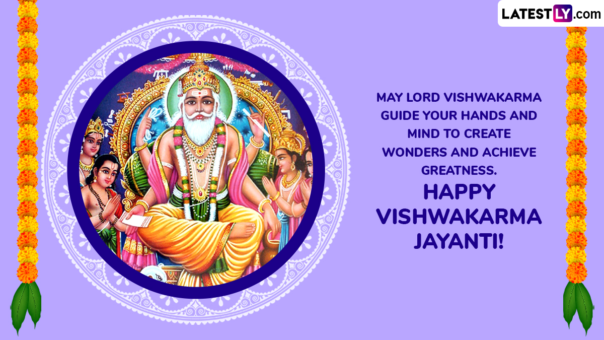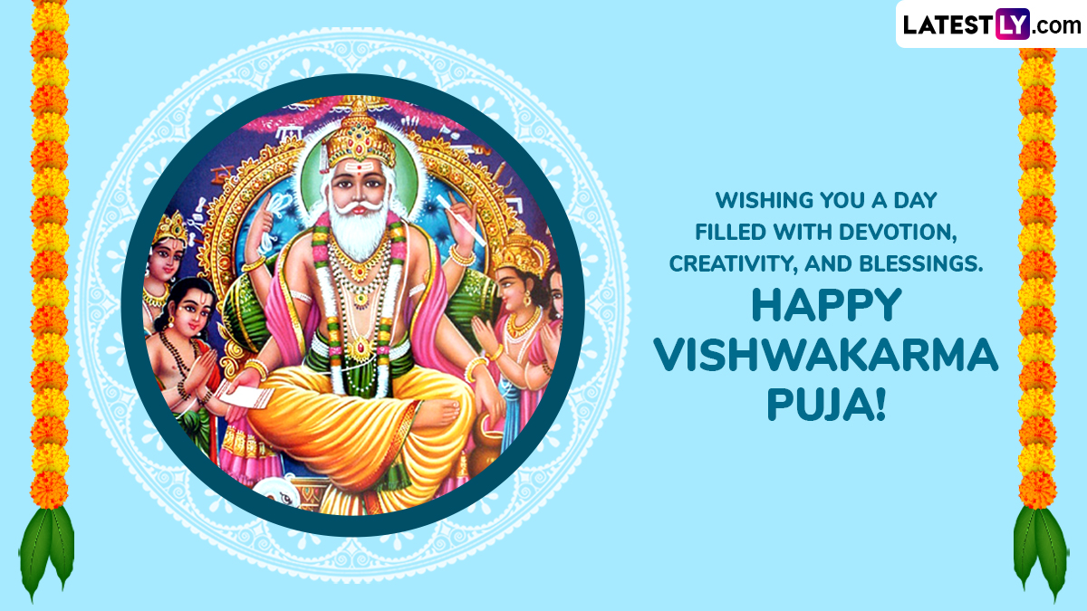 Vishwakarma Puja, also known as Vishwakarma Jayanti or Bishwakarma Puja, is a day dedicated to Lord Vishwakarma, the divine architect and craftsman of the universe. According to Hindu mythology, Lord Vishwakarma is regarded as the celestial engineer who designed the holy cities of Dwarka and Hastinapur, constructed the palaces of the gods, and crafted the powerful weapons used in mythological wars. Vishwakarma Puja 2025 falls on September 17. To celebrate the festival, we bring you Vishwakarma Puja 2025 greetings, WhatsApp wishes, Lord Bishwakarma HD images, Vishwakarma Jayanti messages, quotes and wallpapers that you can share with your friends and family on the auspicious day.