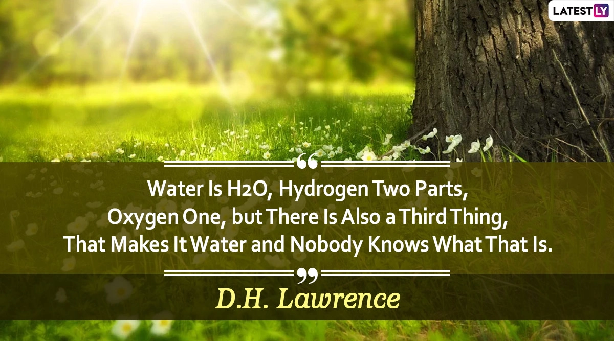 Quote For World Environment Day 2020: Water Is H2O, Hydrogen Two Parts, Oxygen One, but There Is Also a Third Thing, That Makes It Water and Nobody Knows What That Is. â D.H. Lawrence