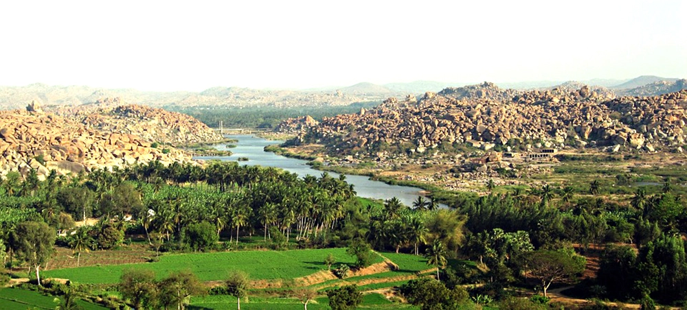 The Group of Monuments at Hampi in Karnataka was a travel spot in the 15th and 16 centuries. It was added to the list of heritage sites in 1986. It has ruins of Vijayanagara, which was the former capital of the powerful Vijayanagara Empire.