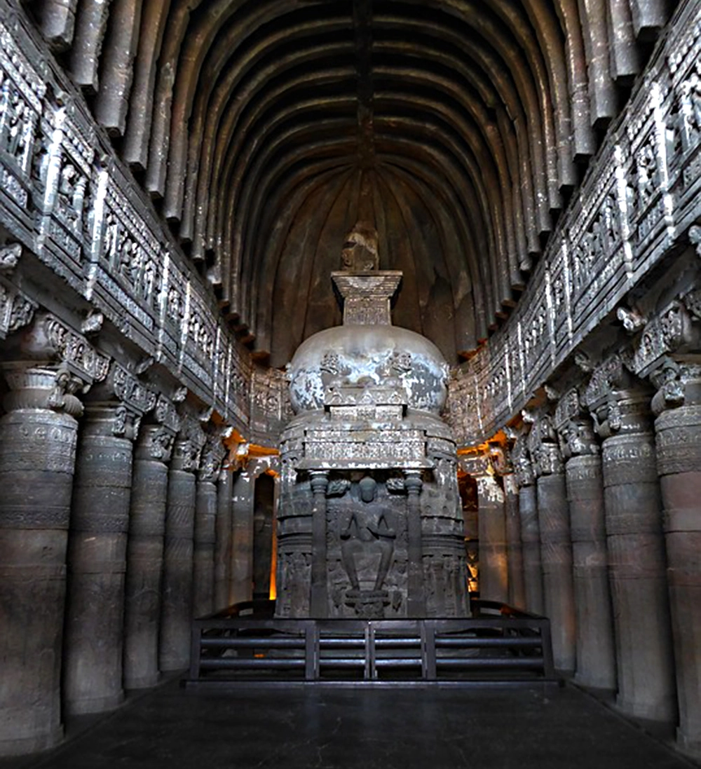 Ajanta Caves in Maharashtra is listed under UNESCO World Heritage since 1983. The Buddhist caves were built in the 2nd century and 6th century.