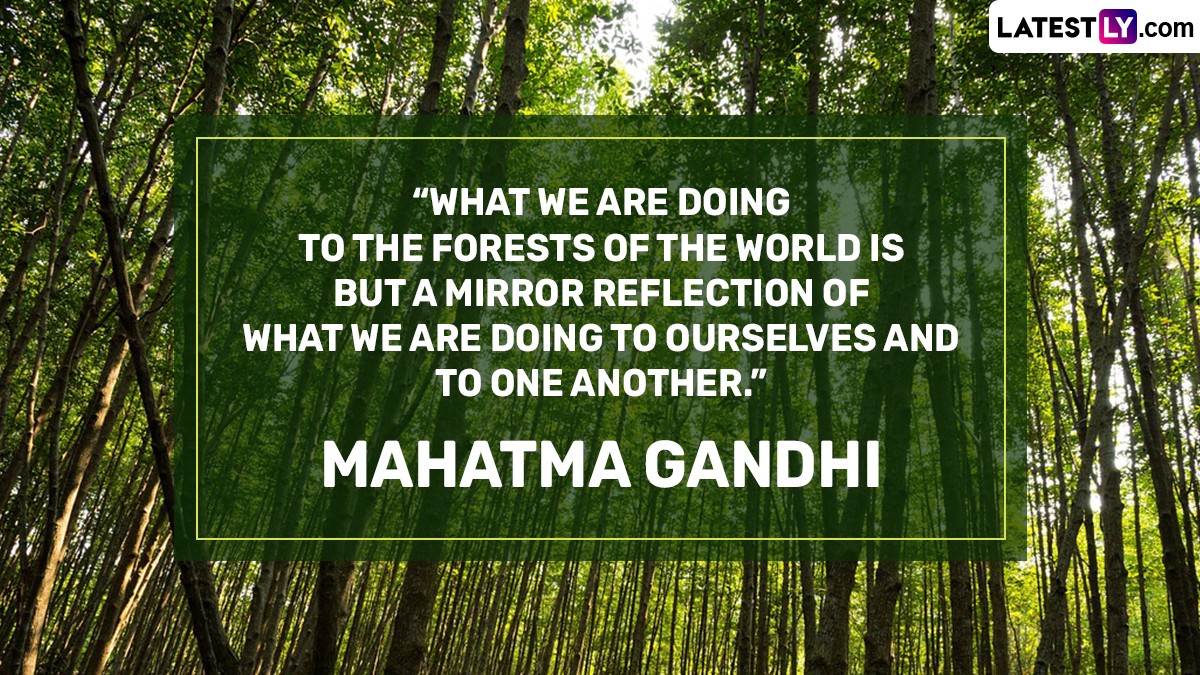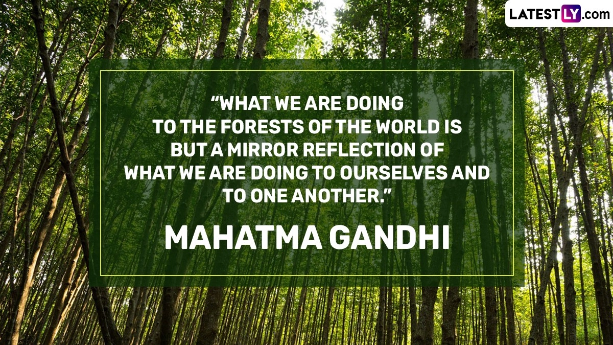 Quote Reads: “What We Are Doing to the Forests of the World Is But a Mirror Reflection of What We Are Doing to Ourselves and to One Another.” Mahatma Gandhi