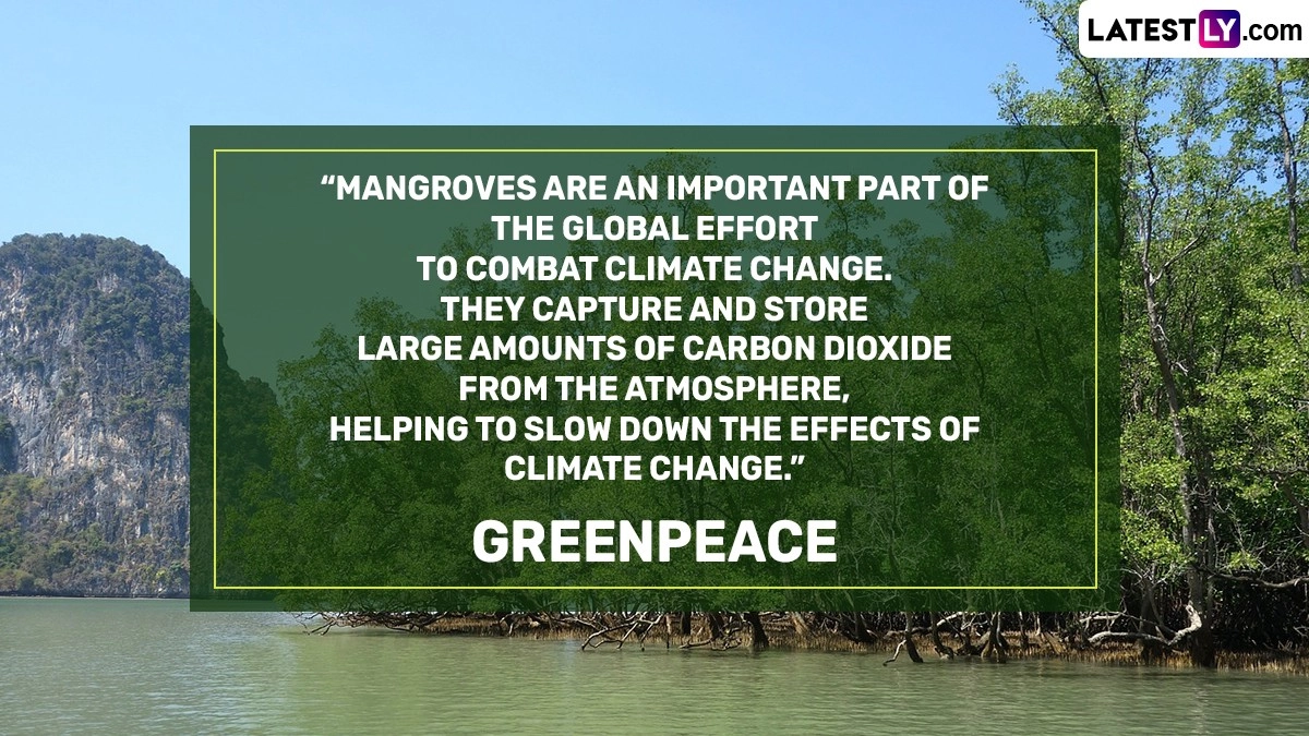 International Day for the Conservation of the Mangrove Ecosystem, also known as World Mangrove Day is observed annually on July 26 to raise awareness about the importance of mangrove ecosystems and to promote their conservation and sustainable management. Mangroves are unique coastal forests found in tropical and subtropical regions around the world, thriving in saltwater and brackish water environments. They play crucial ecological roles by stabilizing coastlines, protecting against erosion and storm surges, filtering pollutants, and providing habitats for diverse marine and terrestrial species. To honour nature and call for restoring and protecting mangroves, we bring you World Mangrove Day 2024 quotes and slogans. Through these HD images, nature sayings and wallpapers, let us take initiatives to save the mangroves and protect our nature.
