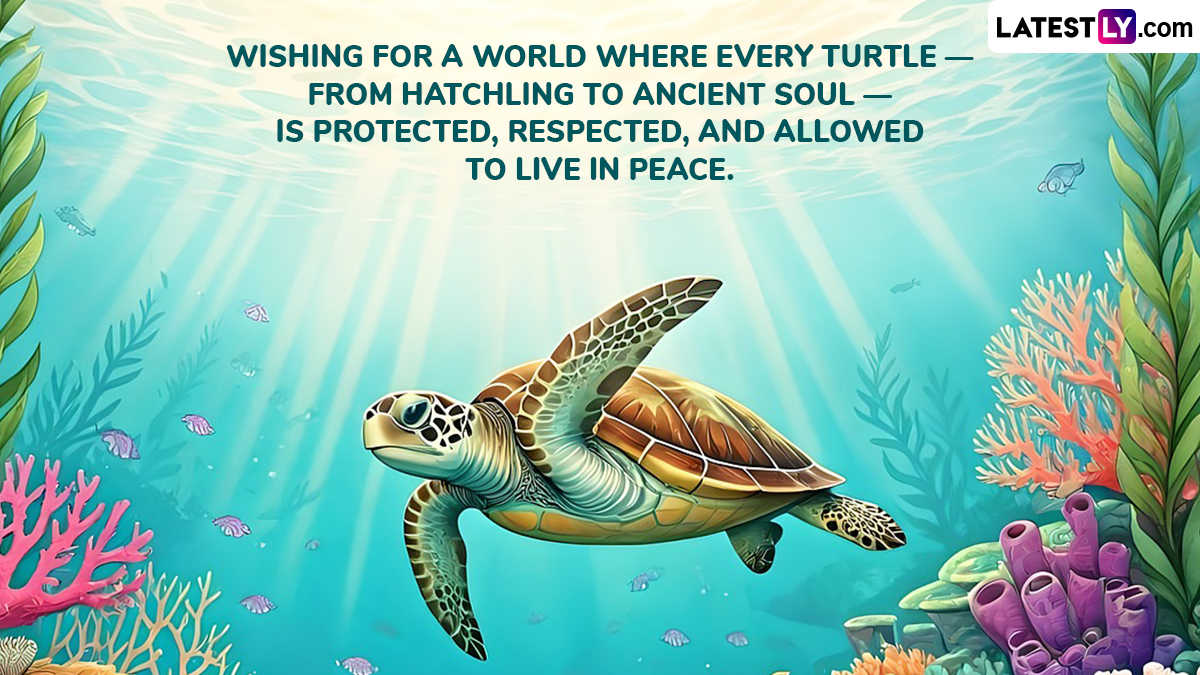 World Turtle Day is celebrated every year on May 23 to raise awareness about the importance of turtles and tortoises and the threats they face in the wild. World Turtle Day 2025 falls on Friday, May 23. Initiated in 2000 by the American Tortoise Rescue, this day aims to educate people about the protection of turtle habitats and the importance of conservation. Turtles have roamed the Earth for over 200 million years, but today, many species are endangered due to habitat destruction, poaching, pollution, and climate change. Celebrate World Turtle Day 2025 with inspiring quotes and heartfelt messages. Spread awareness about the importance of protecting turtles and tortoises and their natural habitats. World Turtle Day Images, Messages and Videos: Netizens Share Tweets, Quotes and Slogans to Raise Awareness About Turtles.