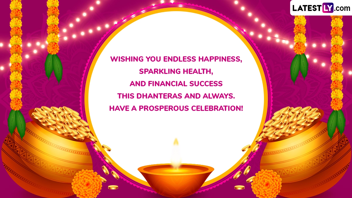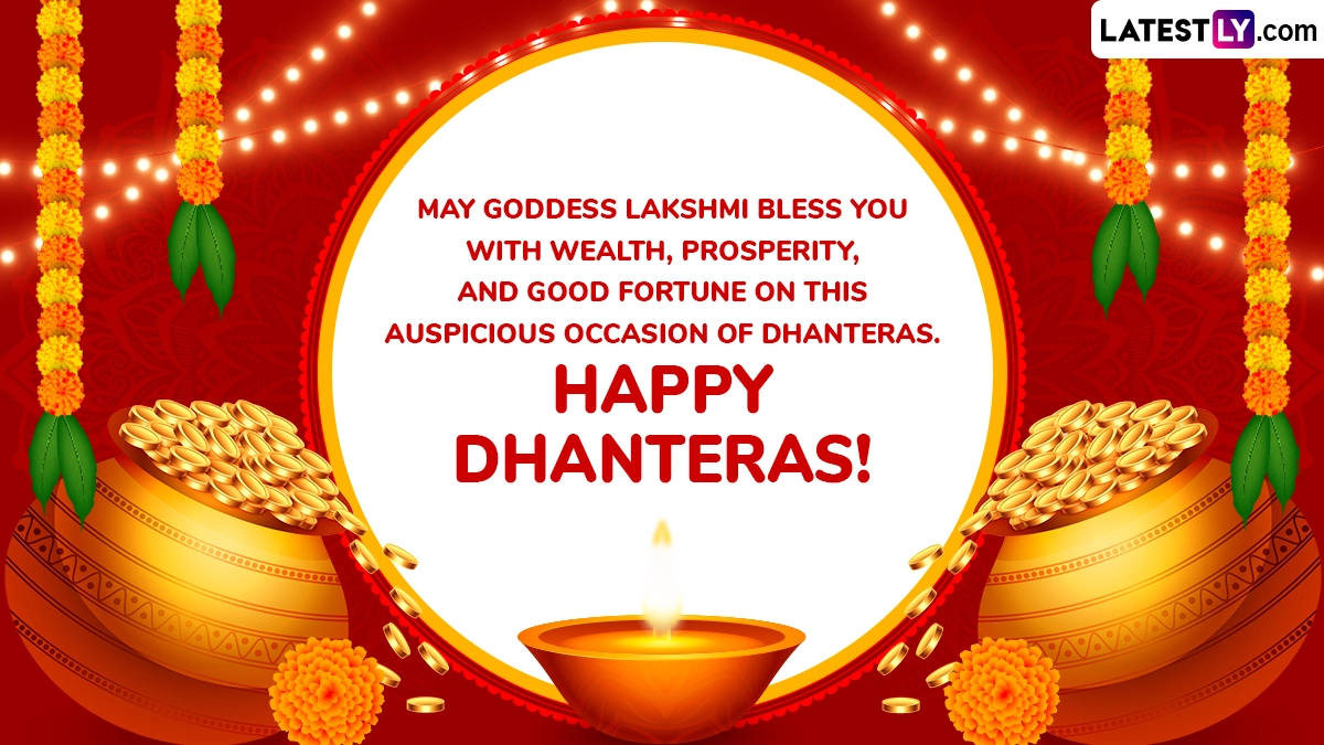 The name Yama Deepam refers to a ‘diya’ that is lit for the God of death, Yamaraj. Devotees light up the diya outside the house during the Trayodashi Tithi during Diwali to ward off any untimely death of any family members. The sacred lamp known as Yama Deepam is placed in the southern direction as it is considered the direction of Lord Yama. To celebrate Yama Deepam 2025, we bring you Yama Deepam 2025 wishes and Happy Dhanteras images for free download online. Diwali 2025 Start and End Dates: Know Dhanteras, Choti Diwali and Lakshmi Puja Timings, Important Rituals and Significance To Celebrate the Festival.