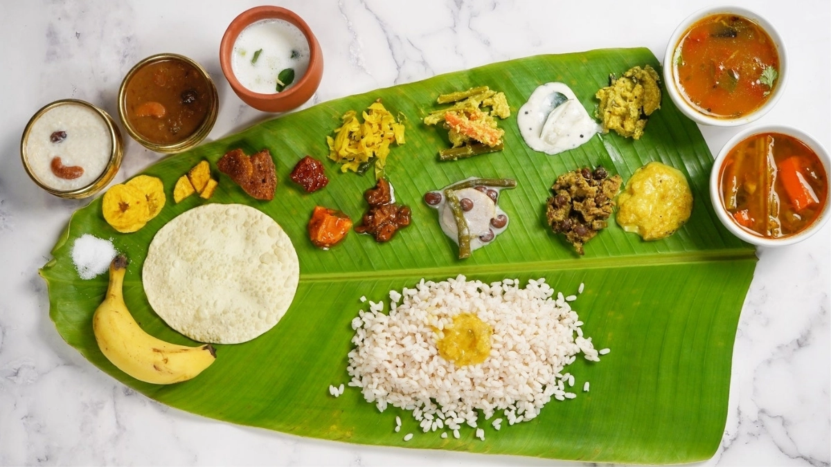Onam Sadhya: This is a grand feast that includes a variety of dishes served on a banana leaf. Some key components of the Onam Sadhya include Sambhar which is a savoury, spiced lentil stew with vegetables and Rasam which is a tangy, spicy soup made with tamarind and spices, often served as a side.