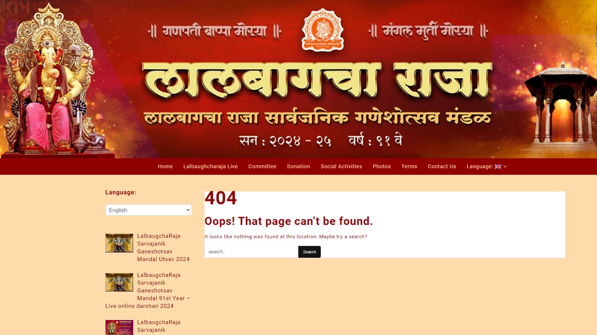 However, this year, there is no official information of the Lalbaugcha Raja Ganesh Puja Prasad being available for online order. The website has an official Lalbaugcha Raja Prasad page. On clicking the link, you are redirected to a page that gives the ‘404 error’ message.