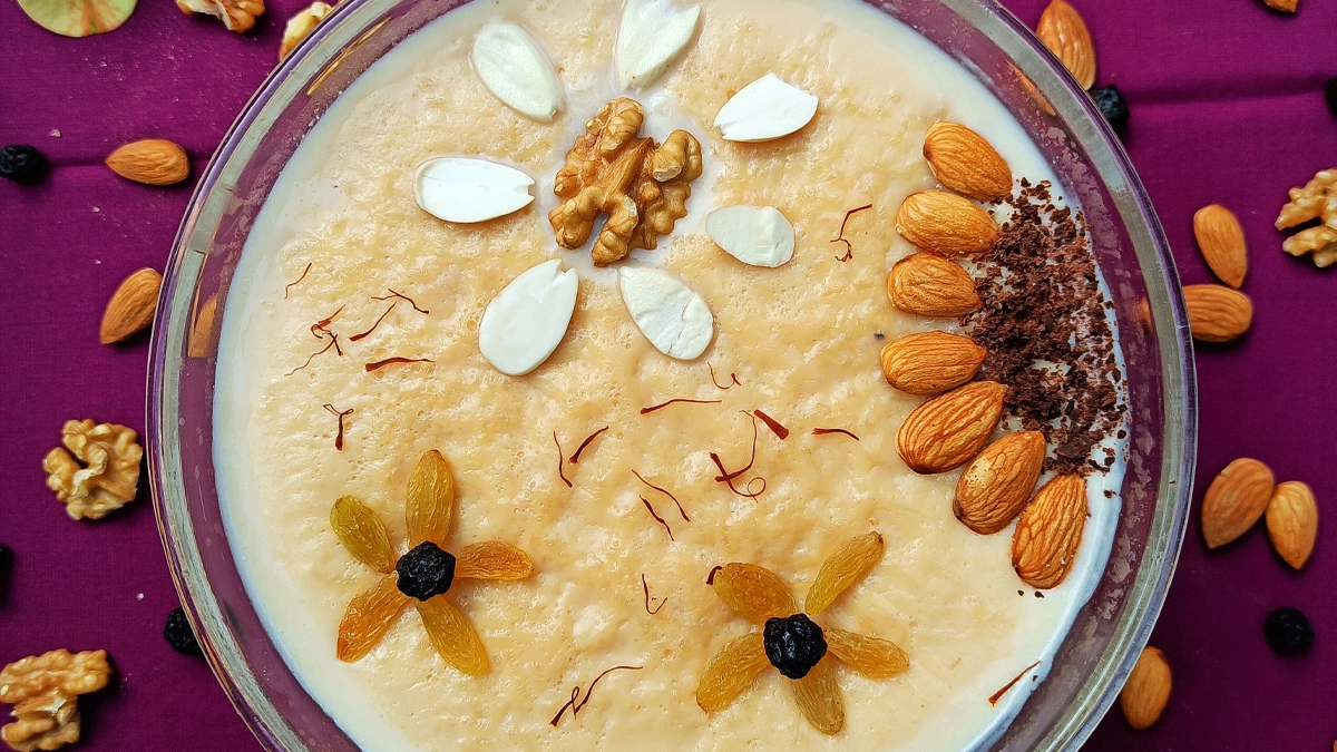 Bonus Sweet Item! Kheer: A creamy rice pudding made with milk and sugar and flavoured with cardamom and nuts. Kheer is often garnished with saffron or dried fruits, making it a comforting and festive dessert.