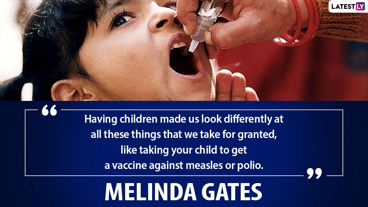 Quote Reads: Having children made us look differently at all these things that we take for granted, like taking your child to get a vaccine against measles or polio.-Melinda Gates
