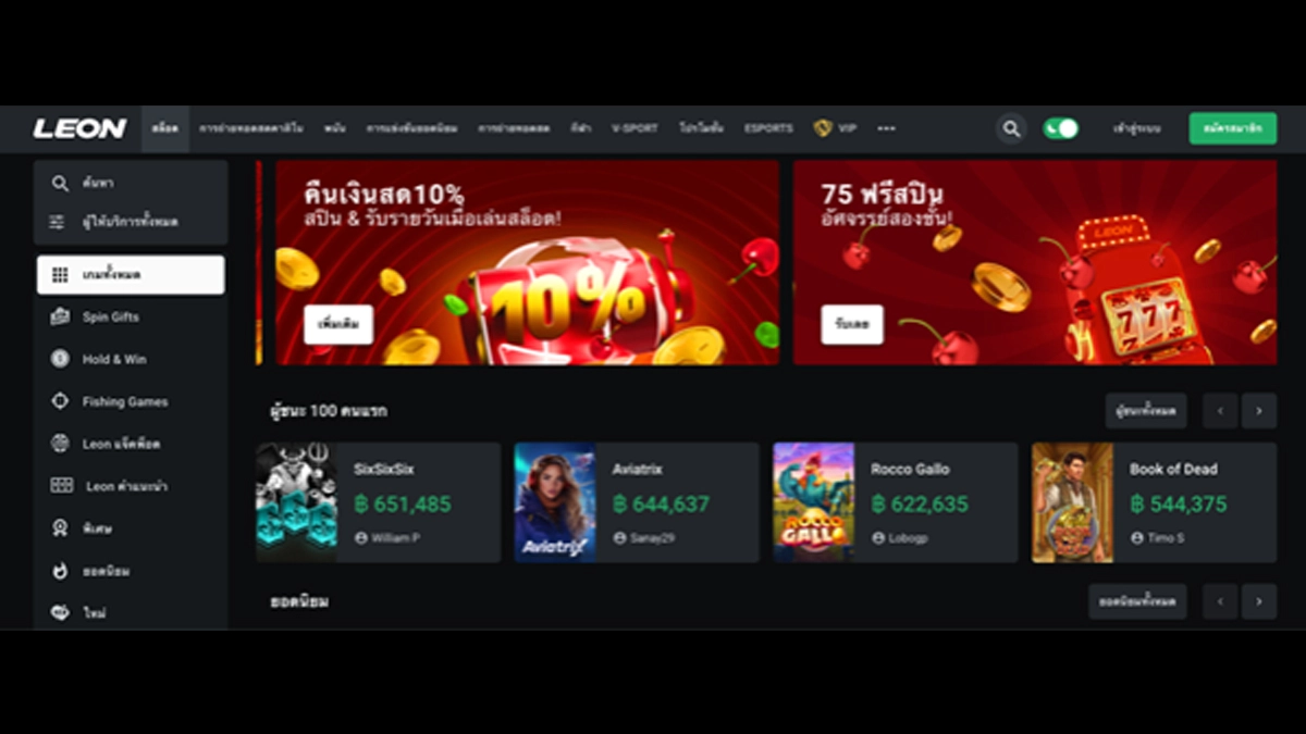 แพลตฟอร์มของ Leonbet โดดเด่นด้วยระบบการเดิมพันฟุตบอลออนไลน์ที่พัฒนาโดยทีมงานของตนเอง ผู้เล่นสามารถเลือกวางเดิมพันได้มากกว่า 5,000 รายการในแต่ละวัน ไม่ว่าจะเป็นการแทงบอลเดี่ยว แทงบอลสเต็ป หรือการเดิมพันแบบ 0.5 ครอบคลุมทุกคู่แข่งขันและทุกลีกจากทั่วโลก อีกทั้งยังจะได้เพลิดเพลินไปกับโบนัสคืนเงินรายวัน 10% สูงสุดถึง 8,000 บาท