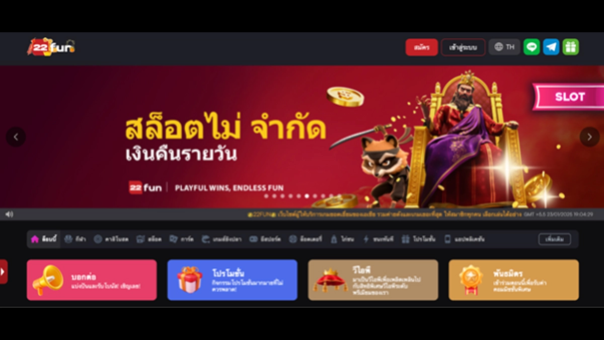 8. 22Fun — โบนัสต้อนรับ 100% สูงสุด 2,000 บาท