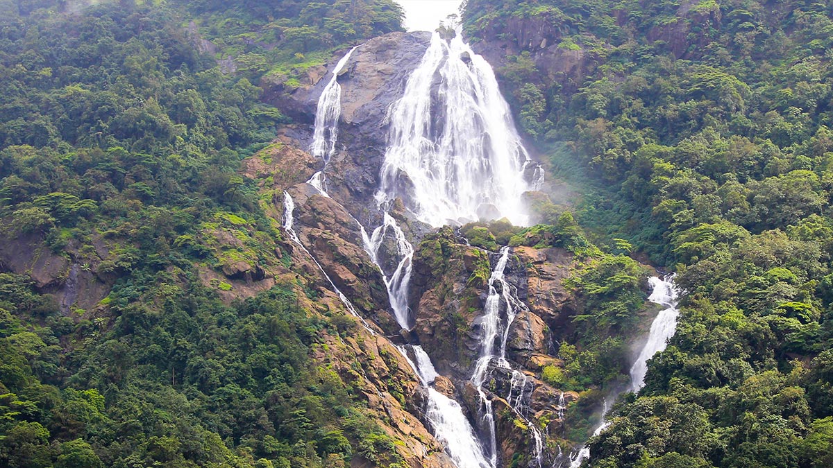 Dudhsagar Waterfalls, one of the highest waterfalls in India, is a spectacular sight located on the Mandovi River in Goa. The name "Dudhsagar" translates to "Sea of Milk," aptly describing the waterfall's milky white appearance as it plunges down a height of 130 metres. Visitors can reach Dudhsagar by trekking, jeep safari, or even by taking a train ride that passes right by the falls, offering stunning views. The monsoon season enhances the falls' grandeur, making it a must-visit during this time.
