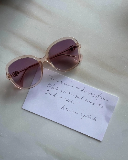 The second picture is that of a quote by Louise GlÞck, which reads as: "whatever returns from oblivion returns to find a voice".