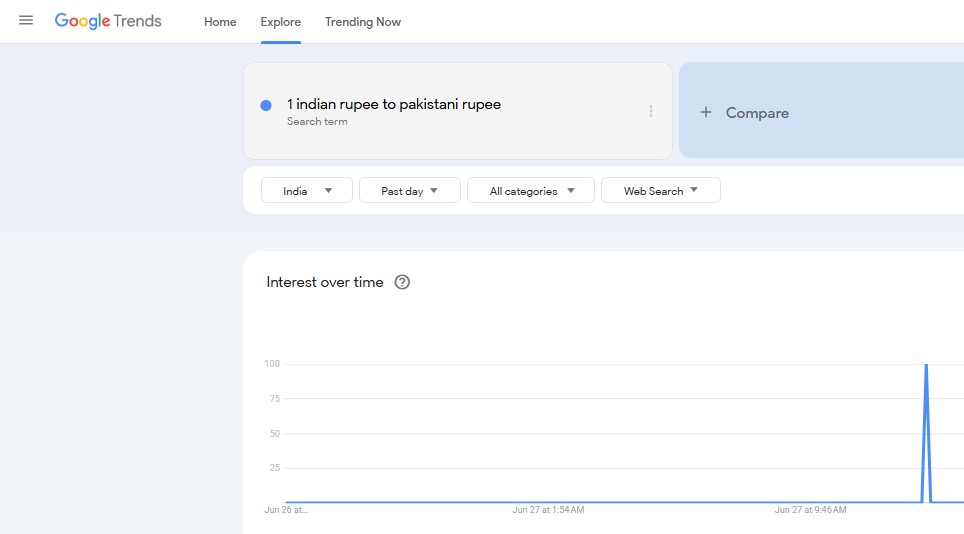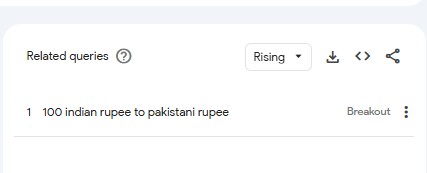 '100 Indian Rupee to Pakistani Rupee' Breakout Search on Google Trends