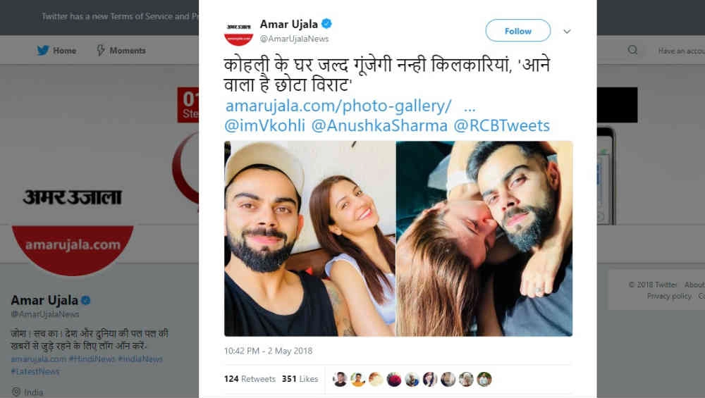 The report also went on to say that a baby boy (Junior Kohli) was on way! The article's caption on Twitter wrote in Hindi read, "Kohli like ghar jald ghoonjegi nanhi kilkariyaan, aane wala hai Chota Virat". The title soon caught social media's attention and heavy backlash followed. Twitterati ridiculed the daily asking how they knew the gender of the child already.