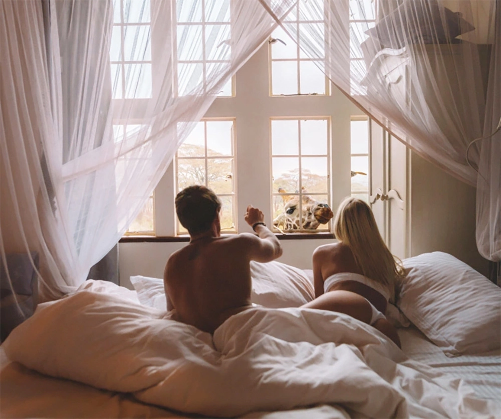 “For my 24th birthday Jack surprised me for the best one yet,” wrote Lauren as she begins with her post. The Australian photographers who loves to travel shared some amazing pictures as they were far far away from the city’s hustle, waking up to each other’s arm as Giraffe greets them in the morning and joins in their breakfast table. Honestly, the photographs would steal your heart! And we must give the credit to her lover Jack for planning such a wonderful surprise.