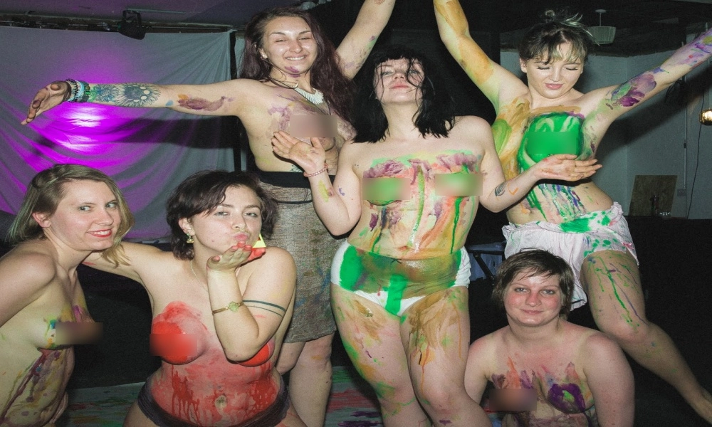 The three-hour workshops combine dancing and painting to create interactive artwork. Sarah continued, “I’m an artist and my practice includes a lot of body art. The classes are a mixture of dancing and painting. I find them very therapeutic, we paint with our bodies while dancing. The women who enjoy breast painting feel really empowered, but we get so many misogynistic comments.”