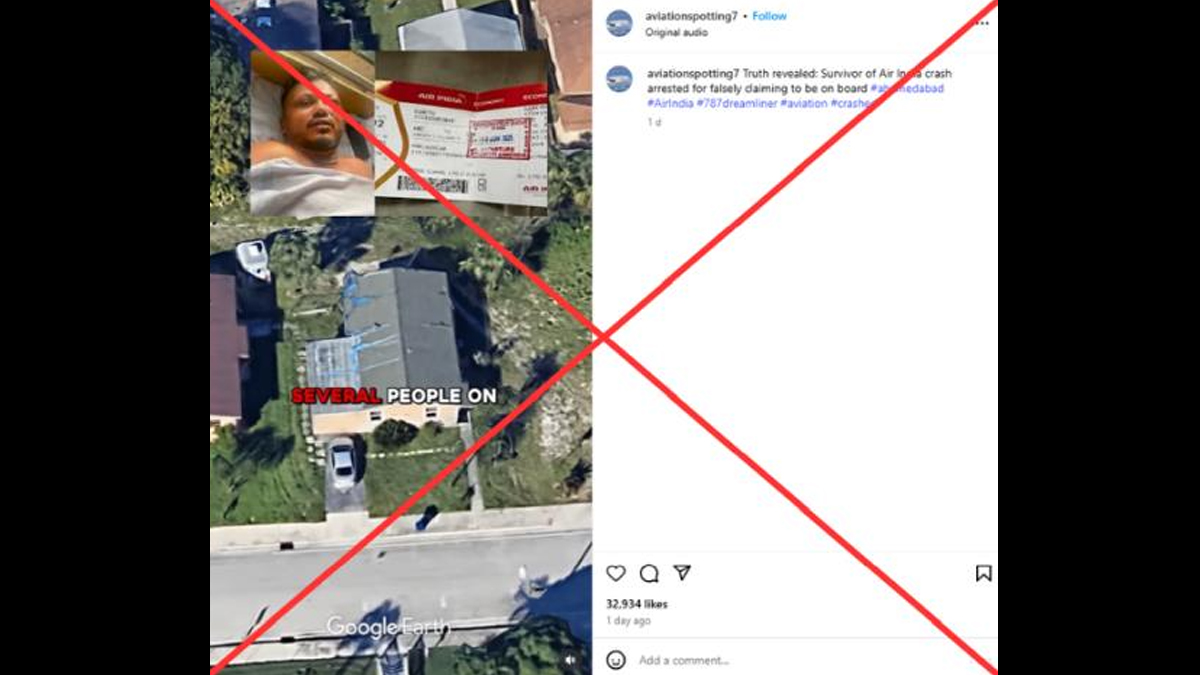 “Truth revealed: Survivor of Air India crash arrested for falsely claiming to be on board #ahamedabad,” read the post’s caption