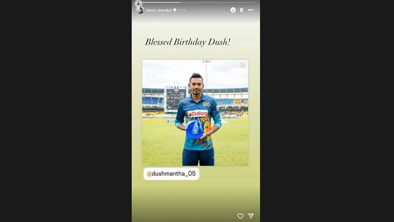 Dasun Shanaka's Instagram Story for Teammate Dushmantha Chameera