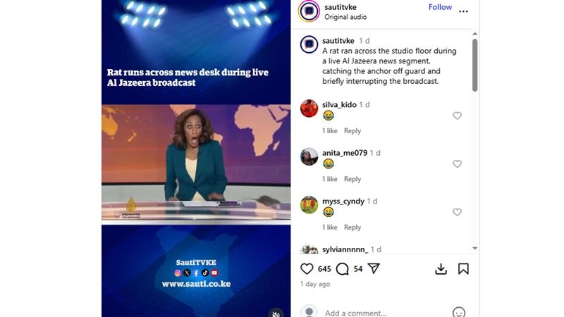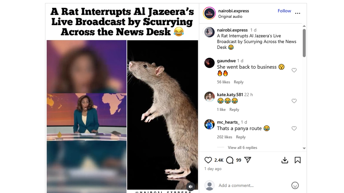 A rat ran across an Al Jazeera news desk during a live broadcast, startling the anchor and interrupting the segment.