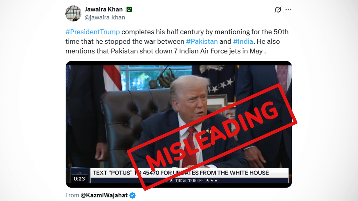 A fact check conducted by the Press Information Bureau (PIB) revealed that the alleged claim that US President Donald Trump said that Pakistan shot down seven Indian Air Force jets during the May 2025 India-Pakistan tensions is misleading. PIB's fact-check unit further said that Pakistani propaganda accounts are misquoting President Donald Trump's statement.