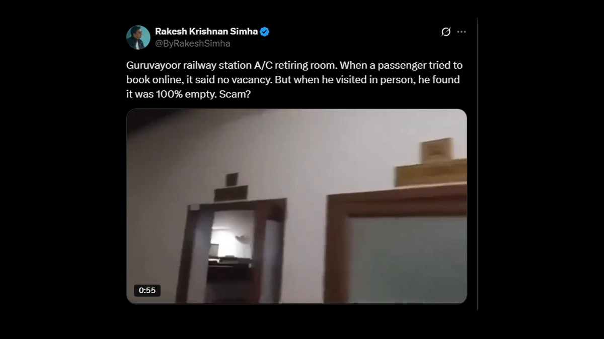 Viral Video Claims Guruvayur Railway Station Retiring Room Shows ‘No Vacancy’ Despite Being Empty