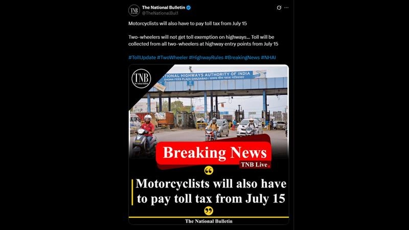 Fake News Being Circulated That Two-Wheelers Set To Pay Toll From July 15