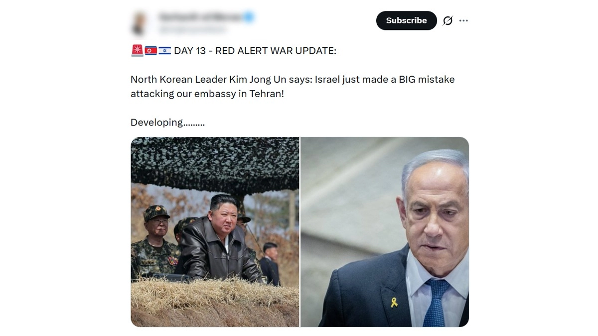 The claim spread widely on X, where several users shared posts alleging that Israel had struck the North Korean diplomatic mission in Tehran and that Kim Jong Un issued a strong warning afterward.