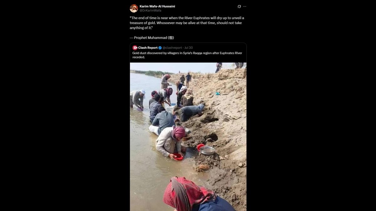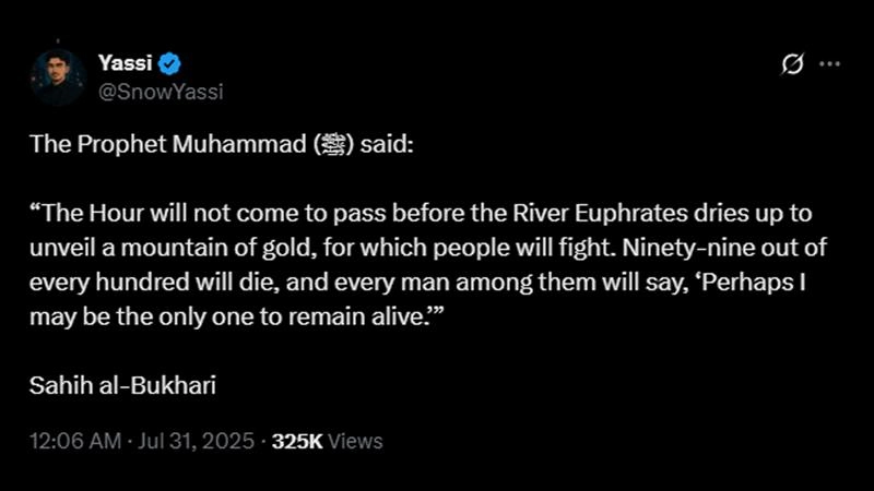 X Posts Mentioning Prophecy of Prophet Muhammad Related to Gold Discovery and Euphrates River