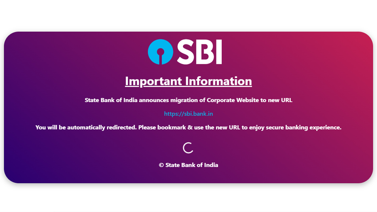 SBI Displays Notice Stating Migration of sbi.co.in to sbi.bank.in