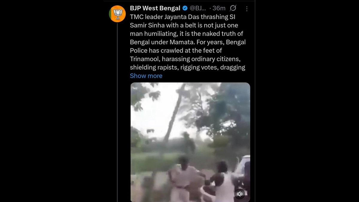 Kolkata, August 29: The official X handle of the BJP West Bengal recently shared a video claiming that Trinamool Congress (TMC) leader Jayanta Das physically assaulted Sub-Inspector (SI) Samir Sinha with a belt. Along with the video, West Bengal BJP wrote, “TMC leader Jayanta Das thrashing SI Samir Sinha with a belt is not just one man humiliating, it is the naked truth of Bengal under Mamata. For years, Bengal Police has crawled at the feet of Trinamool, harassing ordinary citizens, shielding rapists, rigging votes, dragging protesters by their hair, all to prove loyalty to the party. And what did they get in return? Public flogging like slaves by the very thugs they serve.”
