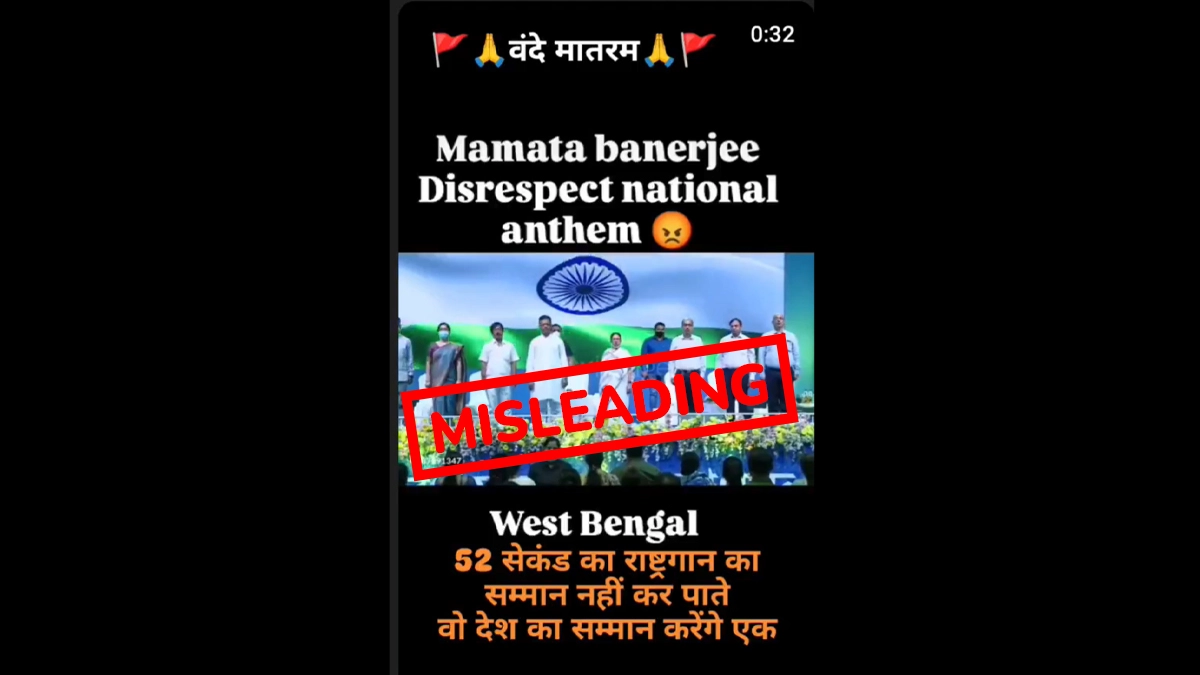 Fact check revealed that the video was edited and shared with misleading claim. The original video shows West Bengal CM leaving the stage after the national anthem ends.