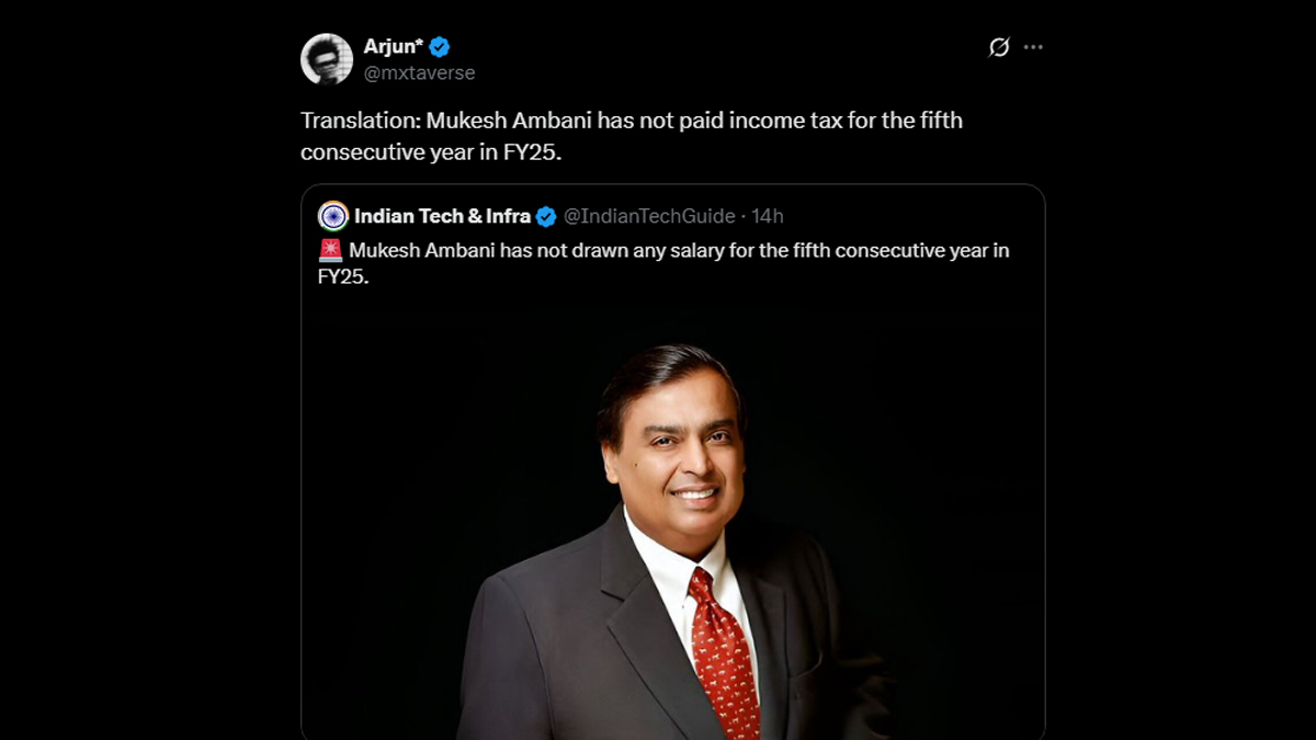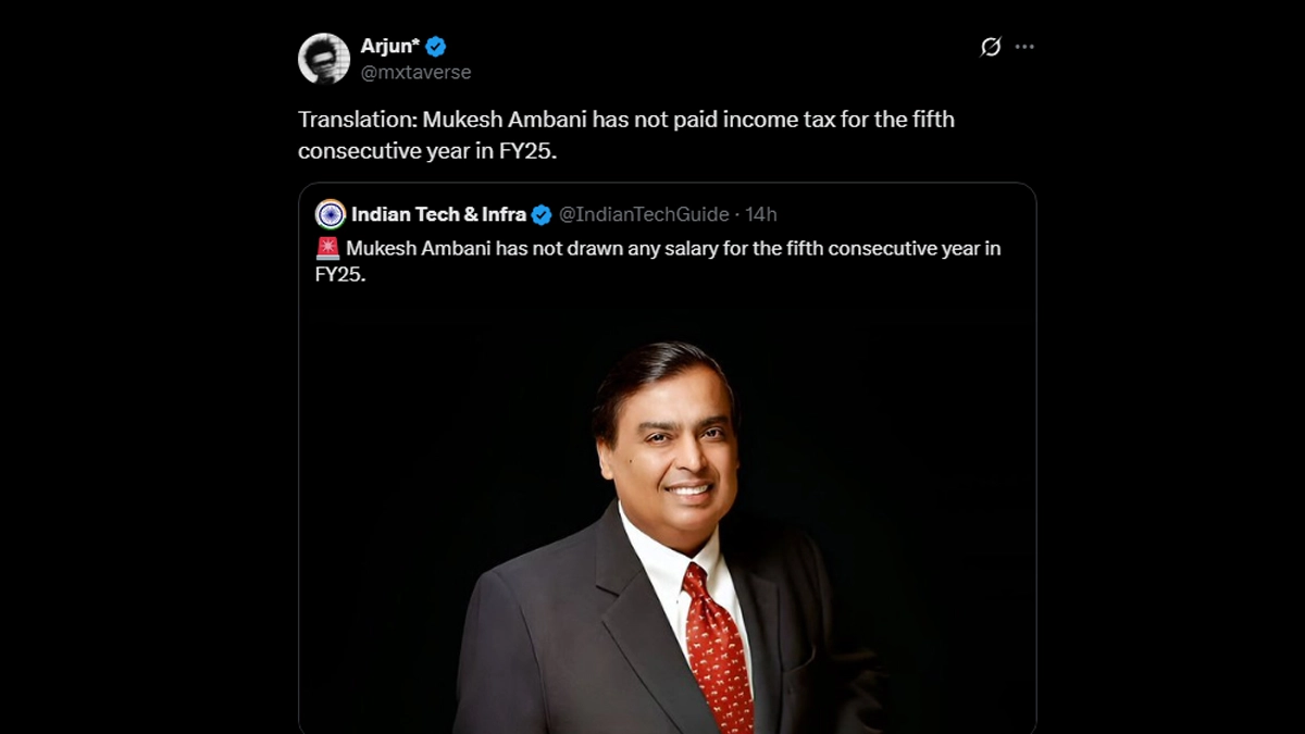 False Claim Says Mukesh Ambani Paid No Tax Without Salary