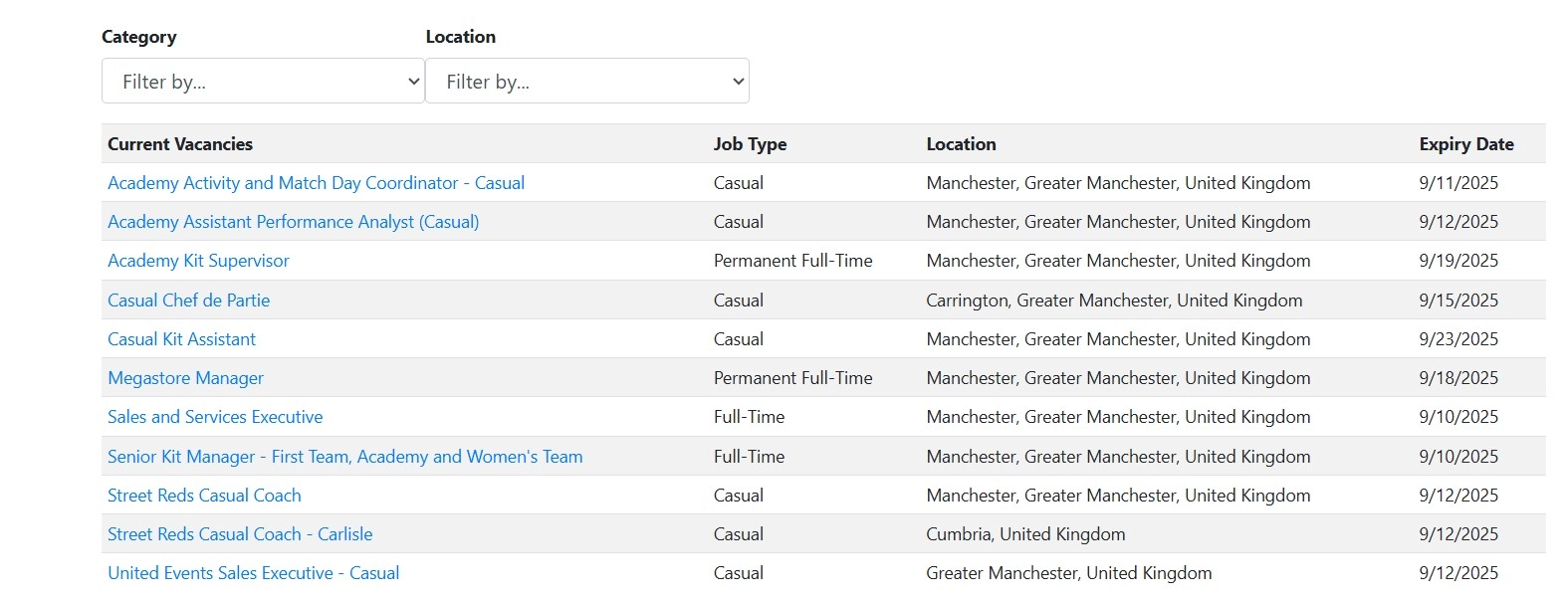 Manchester United's Current Job Vacancies