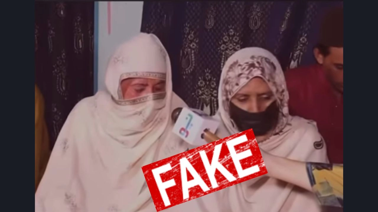 Viral posts with an interview clip of a woman in a beige burqa giving an interview to a news reporter with Urdu and Punjabi subtitles. The captions often read: