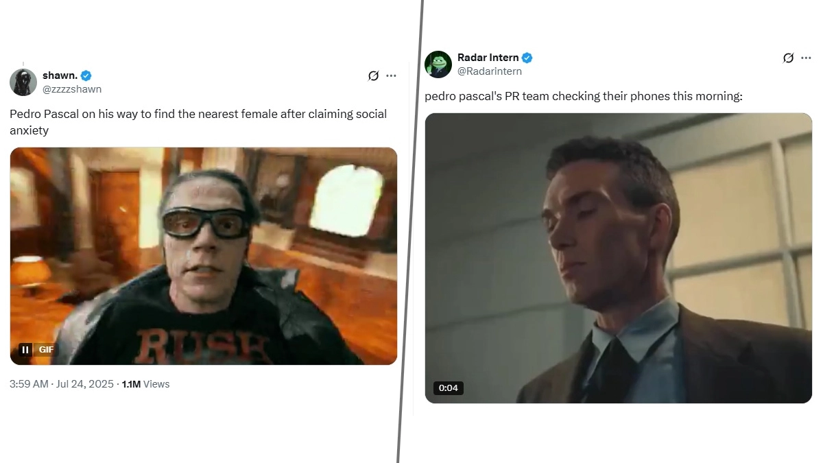 However, the Internet is divided over reactions to Pedro Pascal’s behaviour and social anxiety claims, with many memes going viral on the ‘anxiety trend’ or what netizens call as the ‘Hot Girl Anxiety’. "Pedro Pascal trying to find the nearest female ass after having a mild anxiety attack," said a fan on X, while the other user said, "Pedro Pascal on his way to find the nearest female after claiming social anxiety". Radar Intern also created a meme saying, "pedro pascal's PR team checking their phones this morning:"