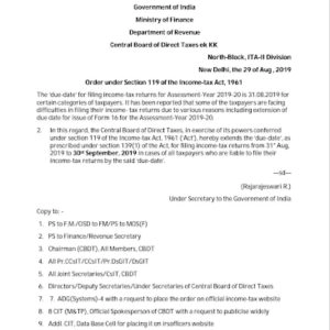 Income Tax Return 2018-19 Filing Date Extended Till September 30.