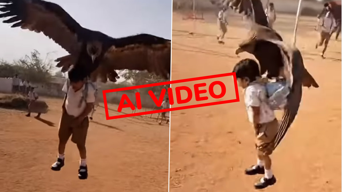 Mumbai, December 4: Did an eagle grab a schoolboy and later throw him to the ground? The question comes as a video going viral on social media shows an eagle grabbing a school student. The viral clip showing an eagle attacking a child was shared by an Instagram user, who captioned the video, "Don’t underestimate the power of an Eagle". In the video, an eagle is seen grabbing a schoolboy and then soaring low above the ground.