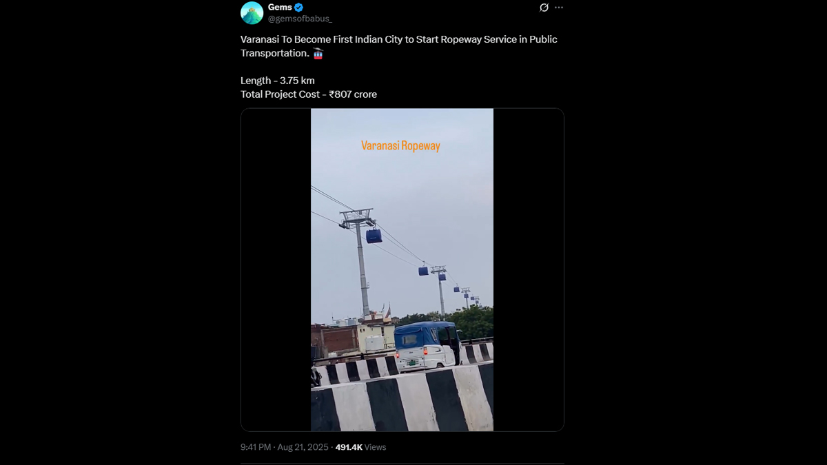 The claim that Varanasi is set to become India’s first city with a public transport ropeway is true, though it comes after the earlier metro plan failed to take off in the inner city.