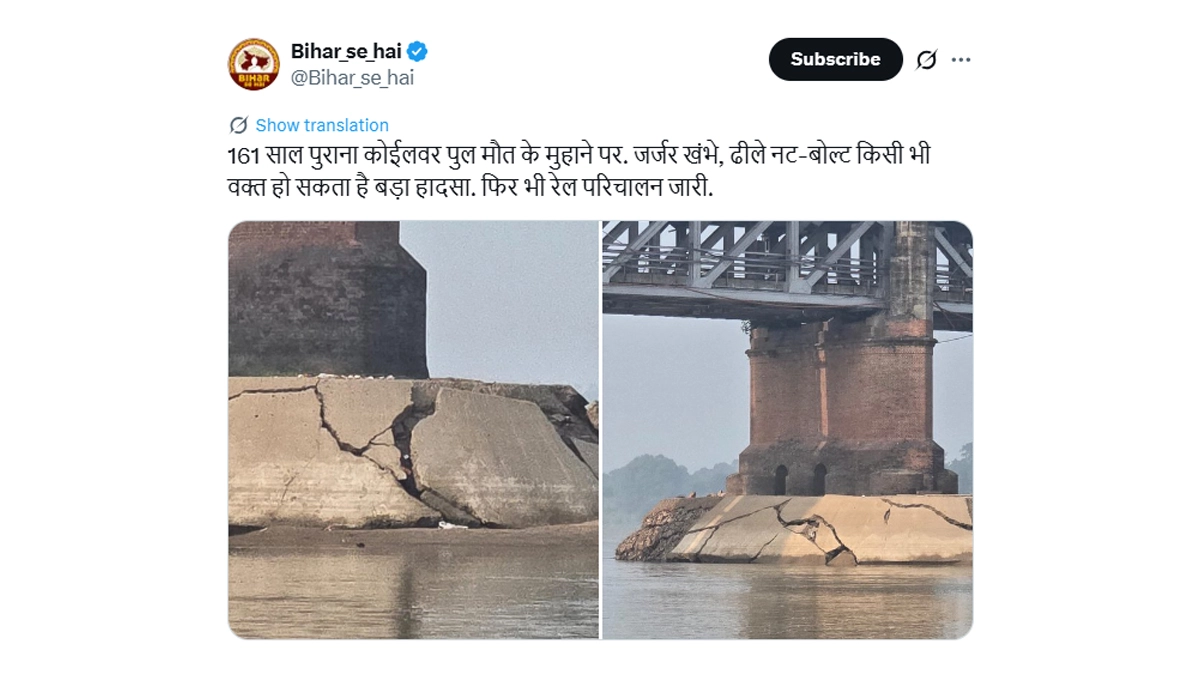 A viral post on X claimed that Bihar’s 161-year-old Koilwar Bridge is collapsing, showing cracked pillars and warning of an imminent accident.