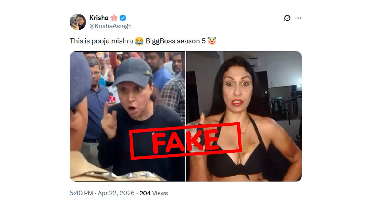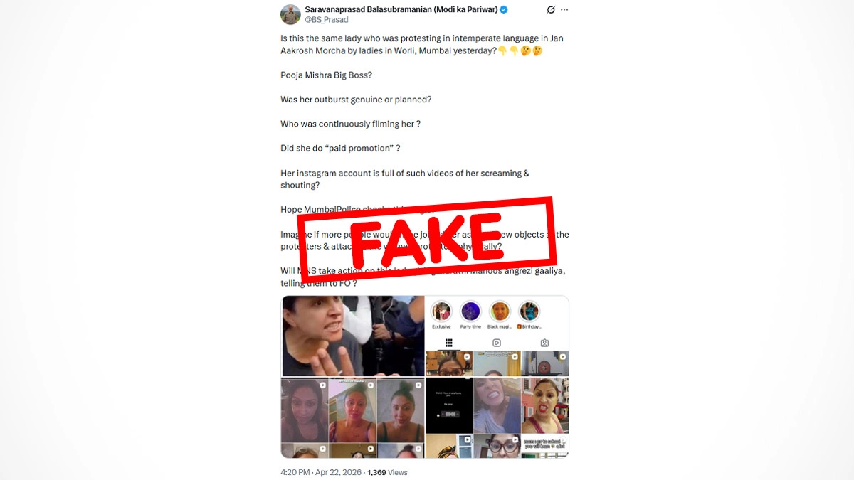 A viral video from Mumbai’s Worli area on April 21 shows a commuter confronting Maharashtra minister Girish Mahajan and police officials during a major traffic jam caused by a political rally organised by the Bharatiya Janata Party (BJP) under the Mahayuti alliance. The woman, reportedly stranded for hours while trying to pick up her child from school, stepped out of her vehicle and questioned the disruption caused by road closures. Social media users falsely claimed that the woman who confronted Maharashtra minister Girish Mahajan during a traffic disruption in Mumbai’s Worli was former Bigg Boss contestant Pooja Mishra (Pooja Misra).