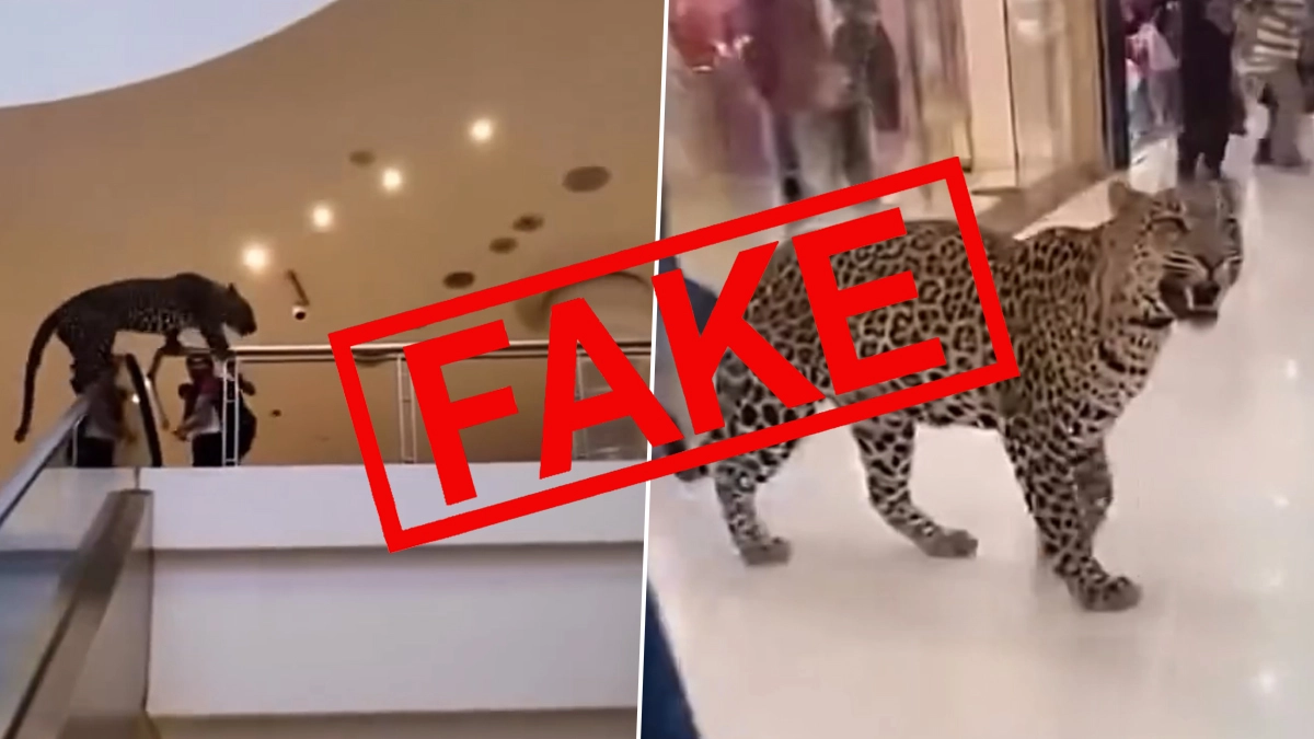 In the video, people can he heard shouting and screaming as a leopard enters a mall in Gurgaon. As the video moves further, a man is heard saying, "Bhai leopard aagaya mall me bhaag" (Brother run, leopard has come inside the mall). The viral clip shows the big cat scaring people on the first floor of the Gurgaon mall and then abruptly running on the ground floor. Another frame of the clip shows the leopard running on the escalator of the mall, thereby causing more panic among the people. Although the video appears to be true, scroll below to know its truth. Did Fishermen Really Catch a Strange Alien-Like Creature Near Australia’s Gold Coast? Fact Check Confirms Video Is AI-Generated.