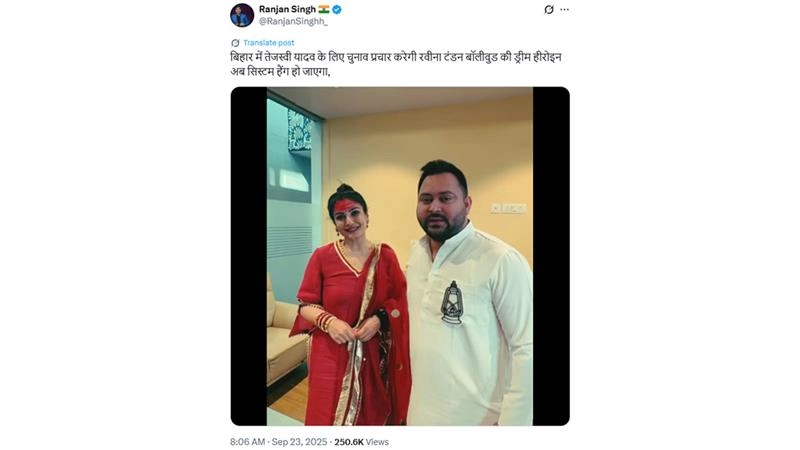 User Falsely Claims Raveena Tandon Will Campaign for RJD in Bihar Polls