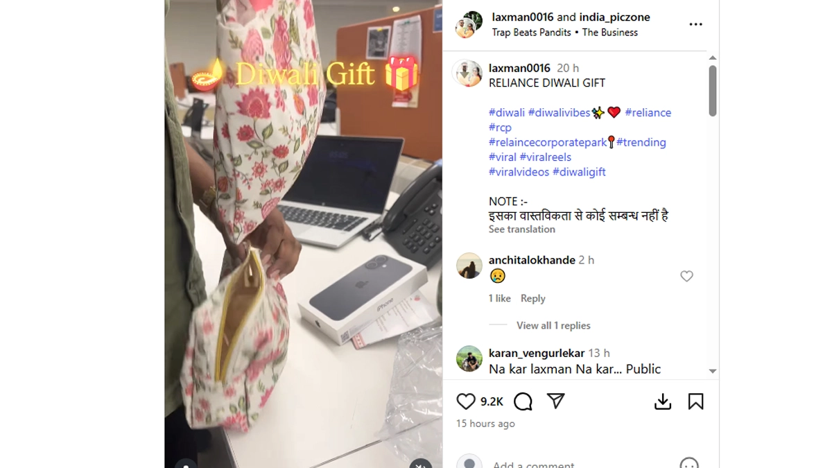 Reliance employees only received dry fruits and festive items. The iPhone videos are fictional and misleading.