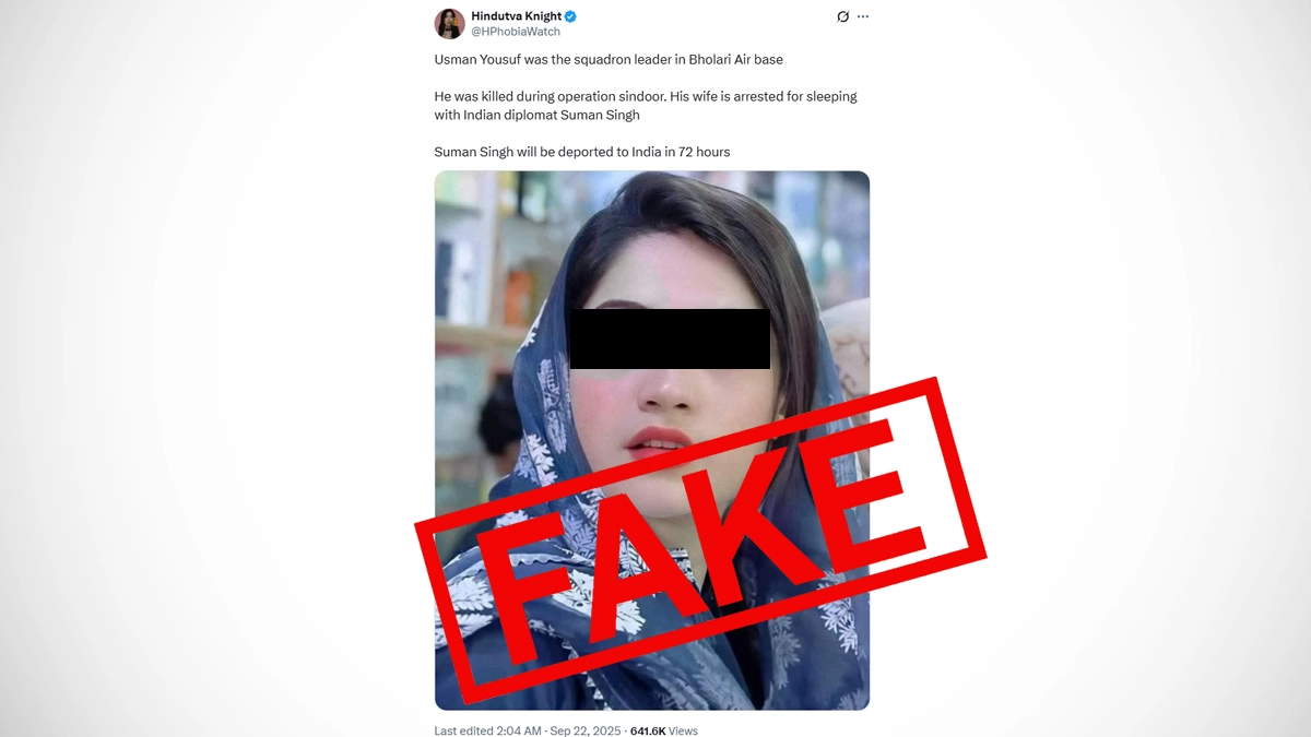 "Usman Yousuf was the squadron leader in Bholari Air base He was killed during operation sindoor. His wife is arrested for sleeping with Indian diplomat Suman Singh Suman Singh will be deported to India in 72 hours," the one user, Hindutva Knight, posted on X. The post alleged that Squadron Leader Usman Yousuf's wife was having an affair with Indian diplomat Suman Singh and that she is now in prison. It also carried a woman's photo, apprently indicating that she is Usman Yousuf's wife. Did Amit Shah Question PM Narendra Modi’s Foreign Policy After Pakistan–Saudi Defense Deal and Admit to Loss of Rafale and S-400? PIB Fact Check Debunks AI-Generated Deepfake Video.
