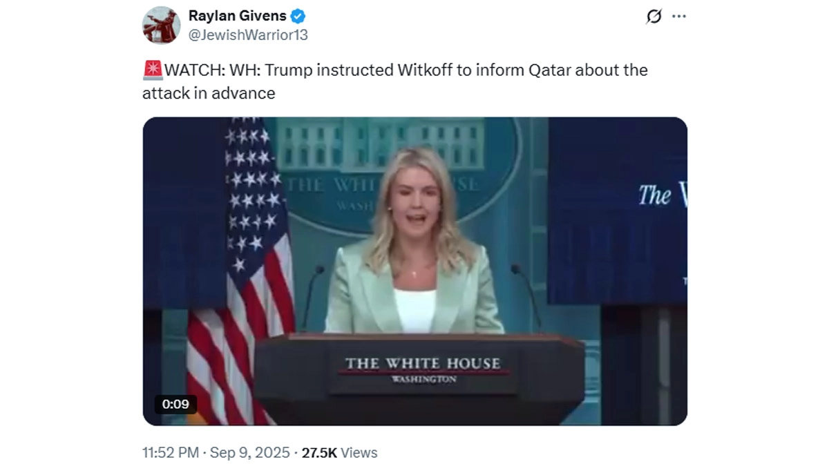 Doha, September 10: Did the United States inform Qatar ahead of Israel’s airstrikes targeting Hamas leaders in Doha? White House Press Secretary Karoline Leavitt claimed in a briefing that the strikes, while "a worthy goal," were coordinated in advance with Qatar, implying that Doha had prior knowledge of the operation. According to her statements, the strikes "do not advance Israel or America’s goals" but were still executed with supposed communication to Qatari authorities. These claims quickly circulated on social media, fueling speculation that Qatar had been fully briefed before the explosions hit the capital.