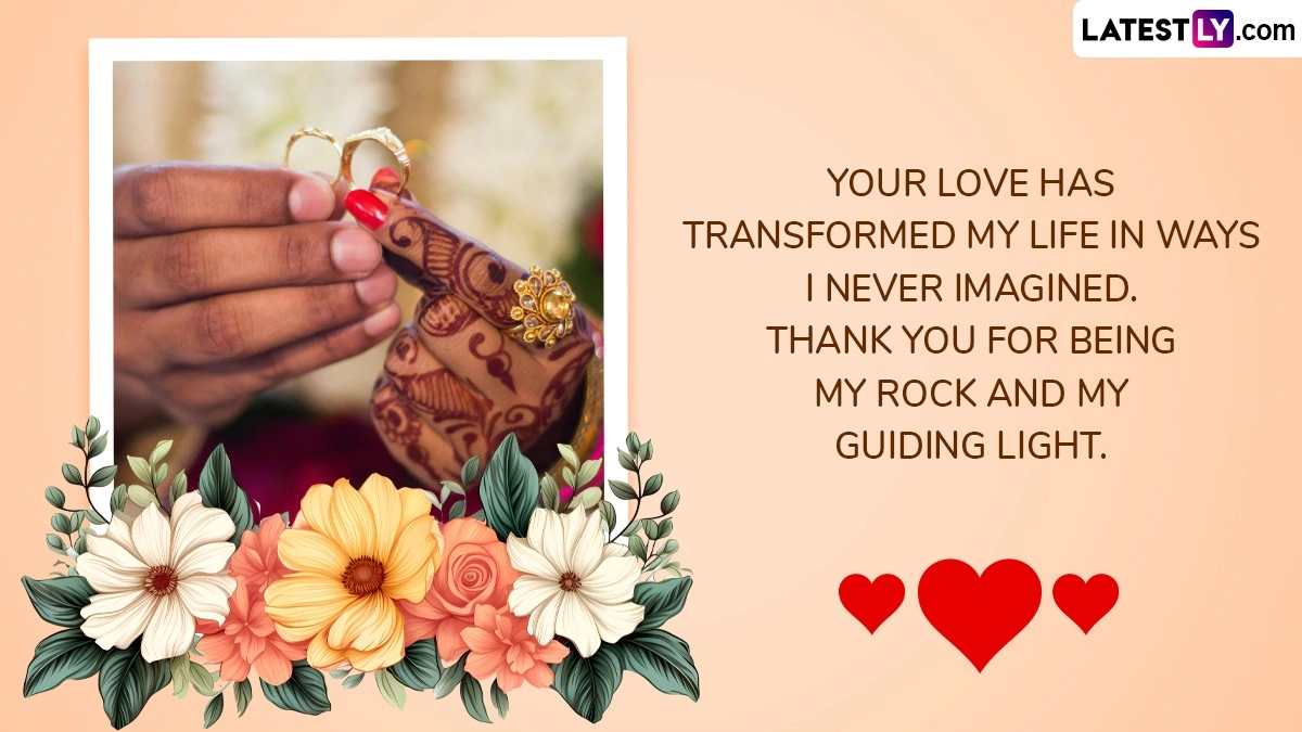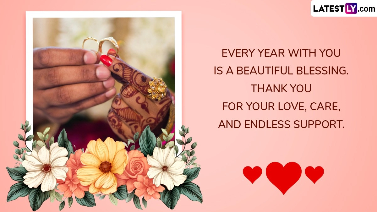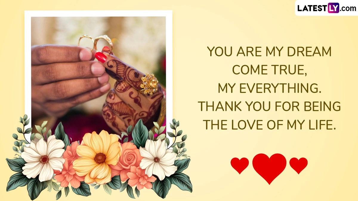 Sharing wedding anniversary wishes and messages is a meaningful way to celebrate the enduring love and commitment between a couple. These messages, whether delivered through a card, a heartfelt email, or a social media post, provide an opportunity to honour the journey as you mark another year of togetherness. Crafting a thoughtful message that reflects your unique story and achievements can add a personal touch to the celebration, making it more memorable and impactful. As you celebrate your wedding anniversary, we at LatestLY, have curated romantic messages Happy Wedding Anniversary wishes, greetings, images, meaningful words for captions, HD wallpapers love quotes and sayings that you can download for free online.